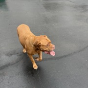 Mastiff mix? Female. Well fed. Sweet. Proof of ownership is required.
