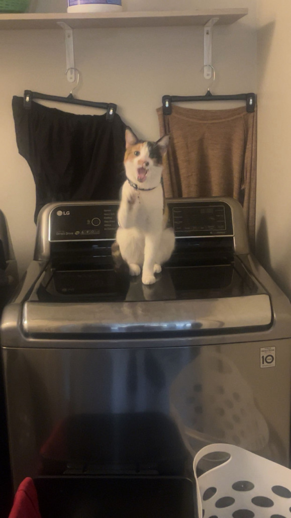 She’s a lanky calico and super skittish, but is super food motivated and will come up to you for treats. She likes to climb, we’ve looked throughout our neighborhood in all the trees and under cars