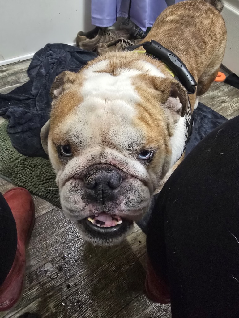 Male bulldog found near avon/Plainfield area. Microchip was never registered. Proof of ownership required