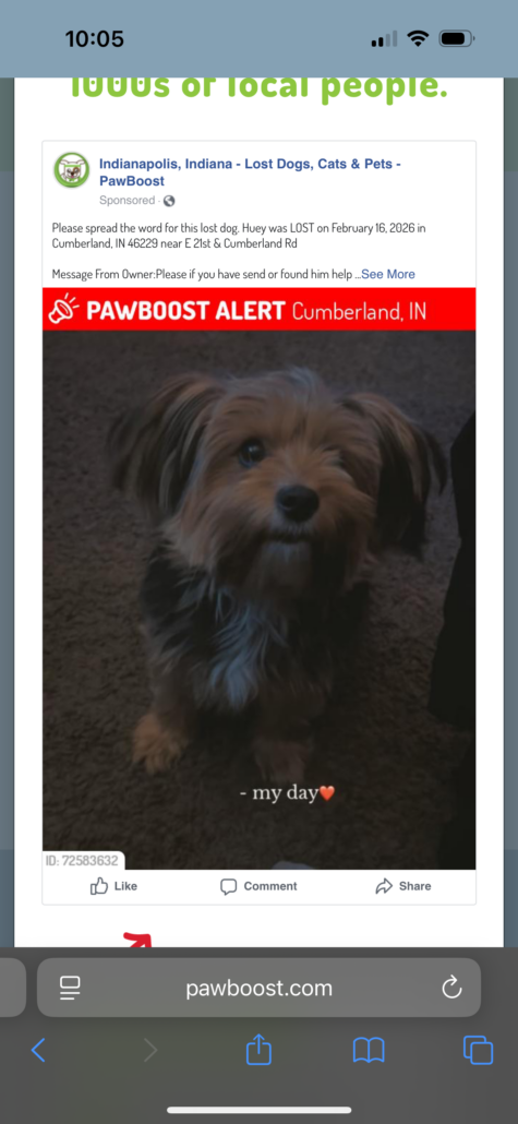 Lost Dog, Alert #95862 Huey missing near E 21st & Cumberland Rd, Indianapolis 4622946229