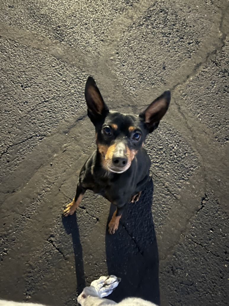 Brown/Black Chihuahua/Pincher Mix found on 23rd & Broadway in Indianapolis, IN.