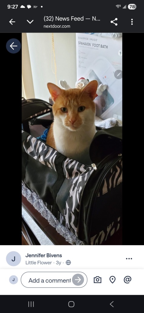 Kyle is 5 years old orange and white cat lost in the 12th and Chester Ave area on the near Eastside