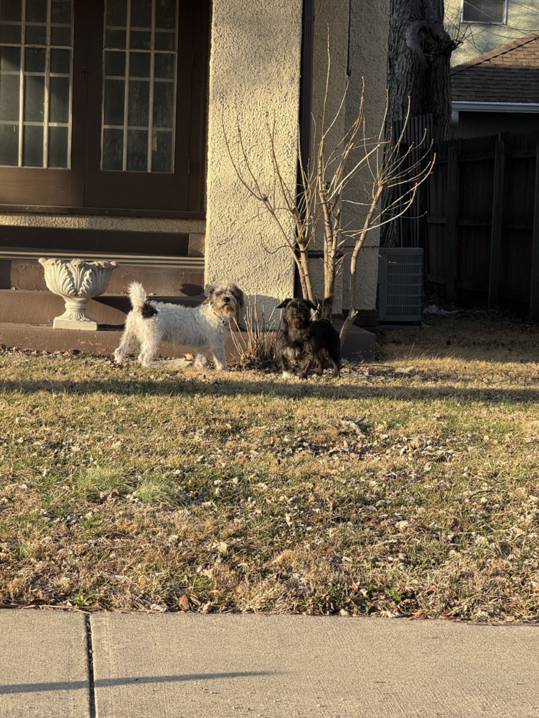 Saw this pair playing on either side of Central Ave & 35th. Almost got hit by cars on central ave. They ran over to Central Ct and I can’t tell if they made it home or not. I couldn’t get close enough to read collar info.