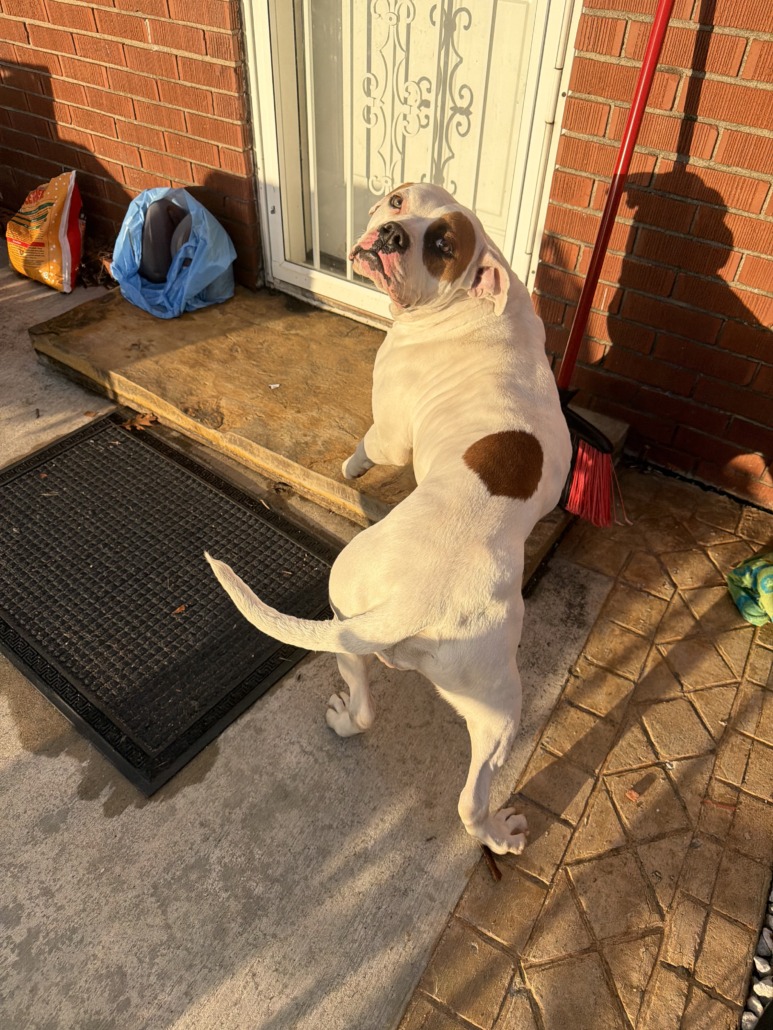Looks like a pitty mix. I’m sure she’s a girl. Very loving. Proof the dog is yours before you can take her.