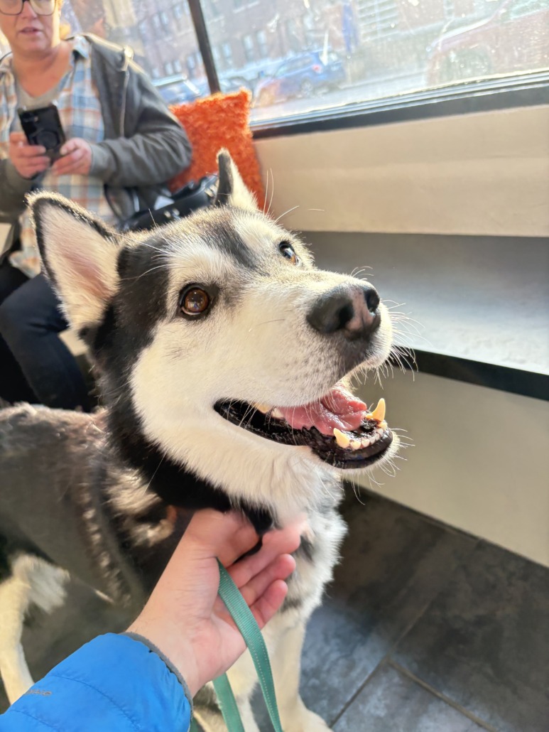 Friendly, well mannered Husky. Well groomed but thin. Collar but no tags.