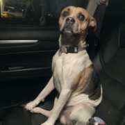 Beagle/Boxer mix. Found running across 10th St. Proof of ownership required.