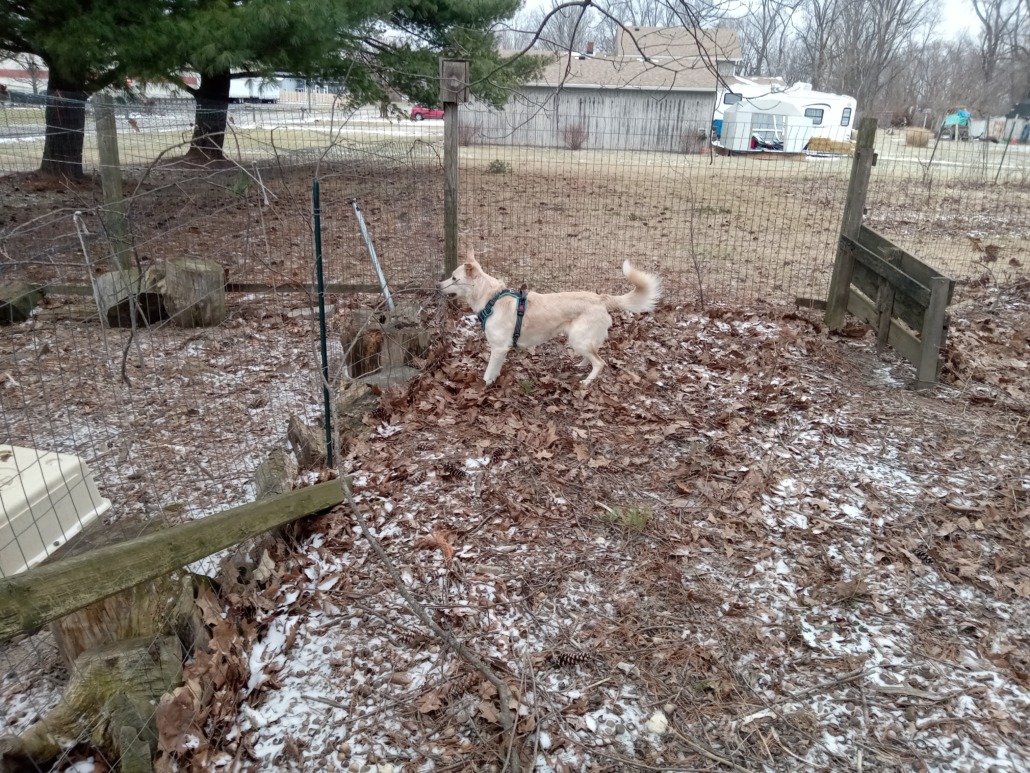 Friendly guy. lots if energy. Has a harness but no collar. Haven’t checked for a chip yet.
