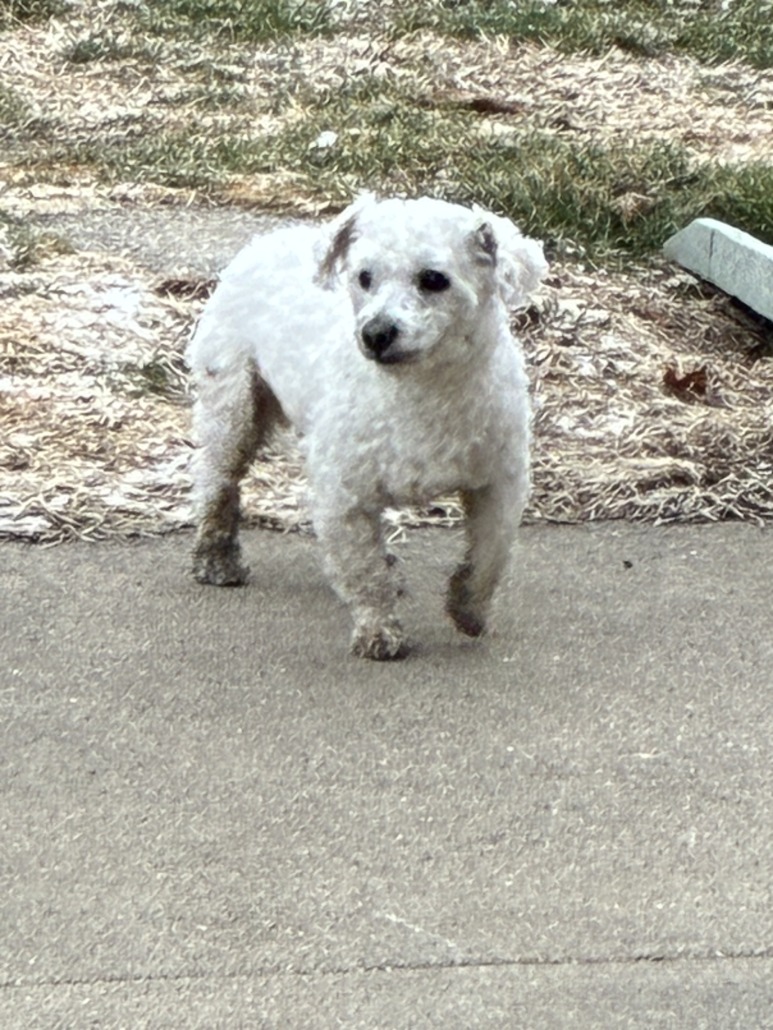 Male poodle found running with a tan boxer. Cannot get close to dog to check for microchip.