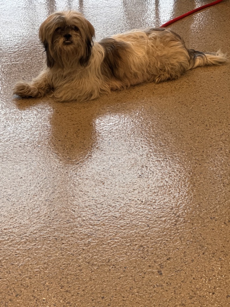 White and Brown Lhasa Apso. Very friendly well mannered dog. Surrendered to Hamilton Humane Society. Proof of Ownership is required