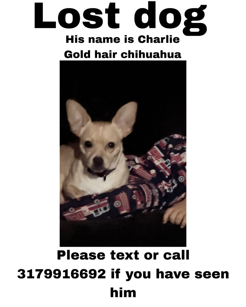 Lost Dog, Alert #96061 Charlie missing near Sherman and 25th st area, East side indianapolis46218