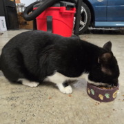 Male cat found this morning. Appears to be a Tom cat but not 100% sure. Tuxedo coat with white on chin and underside/legs. Seems well fed.