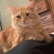 Orange/ yellow male cat. Smallish. Very sweet and friendly.