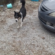Seems to be a husky mix. White blue eyes. Very friendly gets along with other animals and kids.