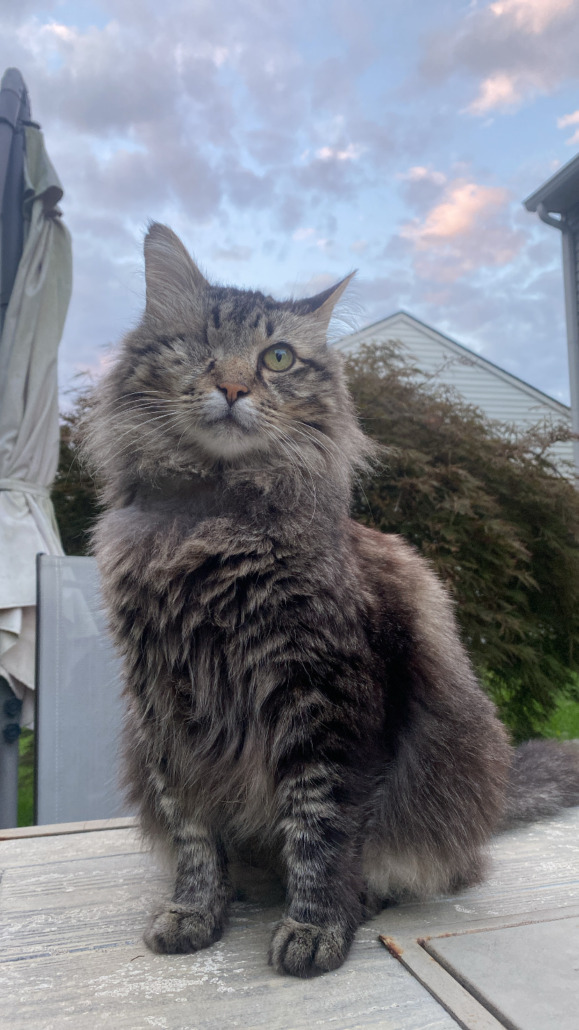 Large Maine Coon male. Has one eye.
