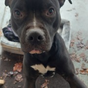Very sweet pittie, very scared but just wants to be a lap dog, 59#, checked for microchip and there isn’t one. Thin white stripe in the middle of his face. I can’t keep him so he’s going to have to go to animal control if they can take him. Love to find his owner today instead!