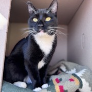 Tuxedo cat. Very vocal when he’s hungry. Skiddish of other people mostly. But if you have treats he’ll come up. Last seen before I went to work at 11:30pm wednesday