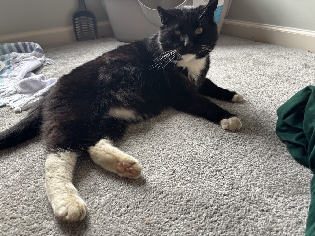 Found Cat: large tuxedo male cat. Found in front of Security Storage business at Kentucky Ave and S High School Rd. Proof of ownership required