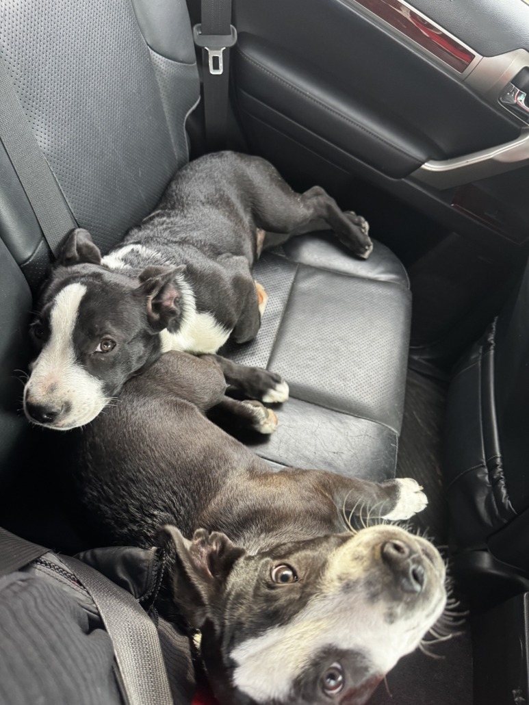 Two black and white dogs found together near the children’s museum. They are not chipped or spayed/neutered. They are also not housebroken.