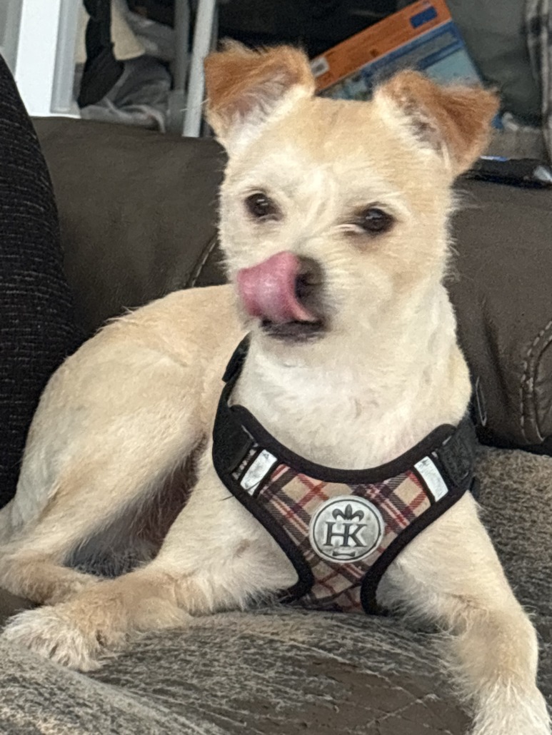 Scrappy is a small white dog with wheat colored ears. He got out of the yard around Bellwood and Franklin Avenue.