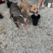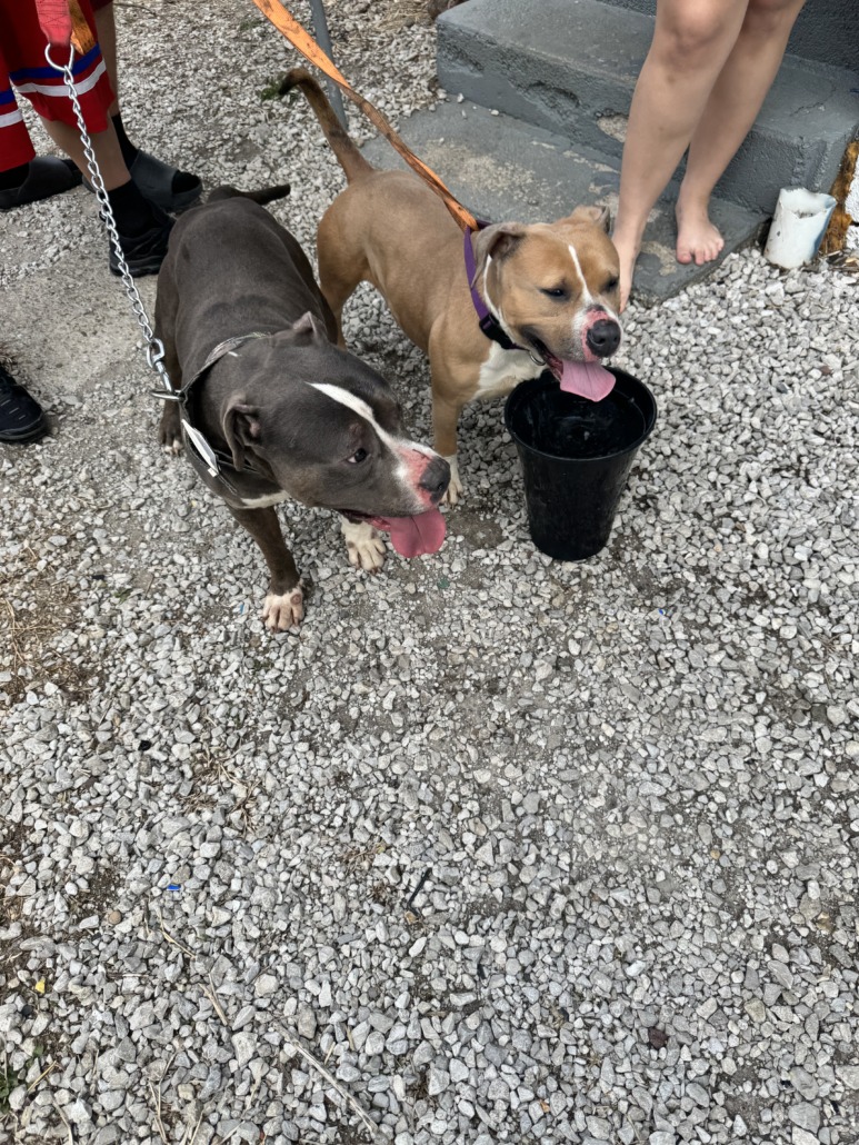Found 2 pit bulls around the nursing home on Keystone just south of Raymond St Indianapolis, IN 46203. Female is the tan one, male is the grey/blue one.