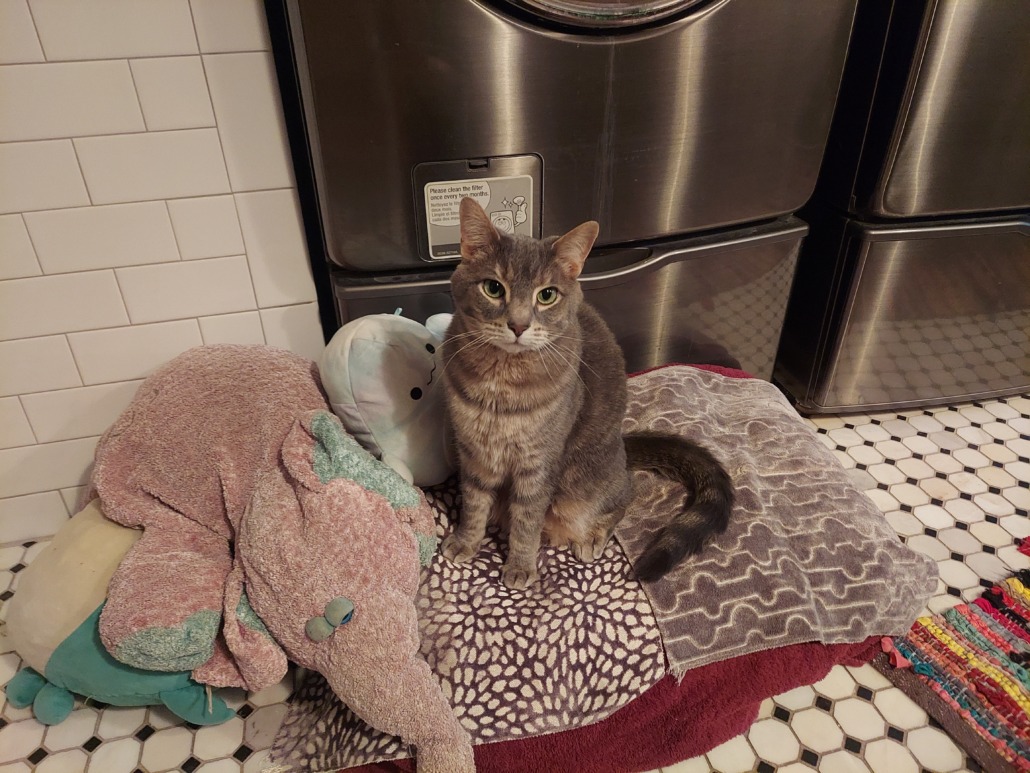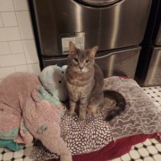 (UPDATED SUBMISSION, CORRECTED DATE LOST) Milo is a large grey tabby with a white/cream colored underbelly. He is normally very skittish, but may respond to his name, “here Kitty kitty”, or shaking a bag of food or treats