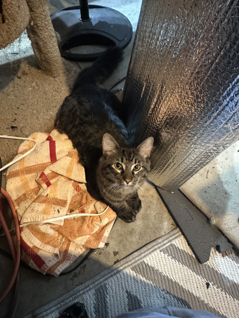 Friendly young intact male tabby cat found in my garage. Seems well taken care of and super friendly likely someone’s pet.