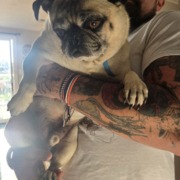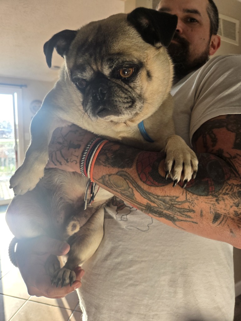 Small male pug tan and black features