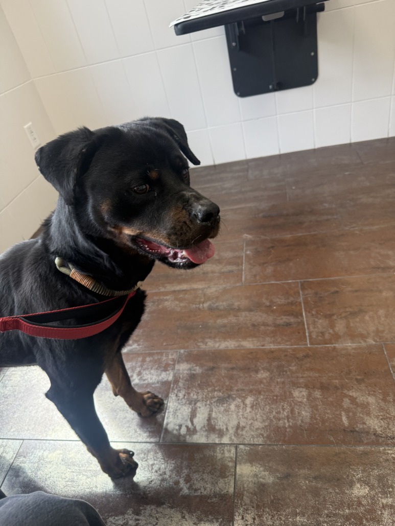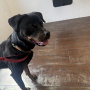 Female Rottweiler, not spayed, green collar. Found at 32nd and Central