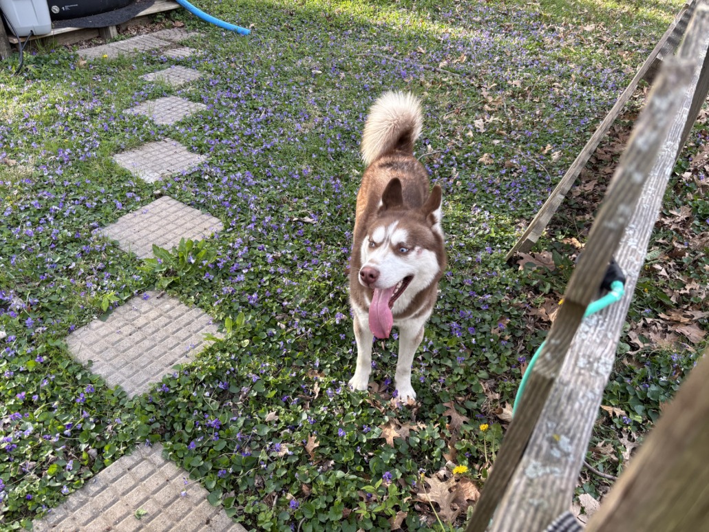 Young male husky. No collar. Have not checked for microchip. Friendly. Currently in our fenced in yard on a home on Melbourne Rd., South Drive.