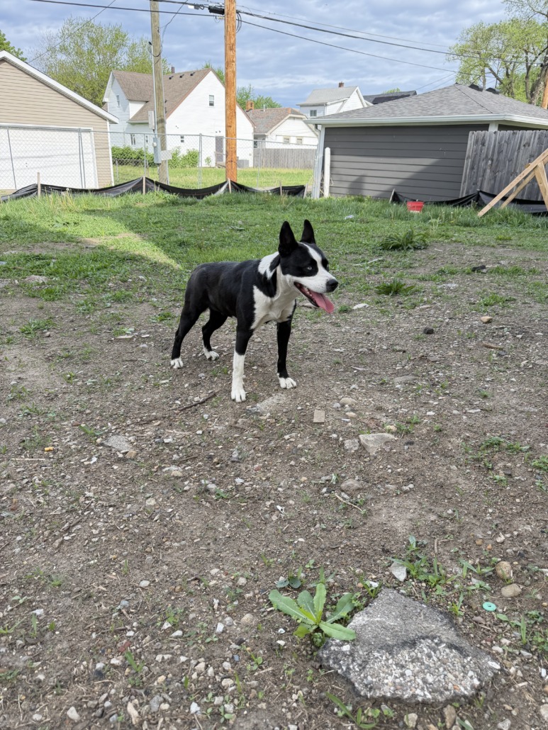 I saw this dog around Applegate St. I could give her some water, but she didn’t let me catch her and ran away. I saw her running around the neighborhood, and another male dog was trying to get her. She is docile, but was a little bit scared when I tried to get close to her.