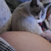 Female siamese cat. She is fixed and has a tattoo on her belly and in her ear.