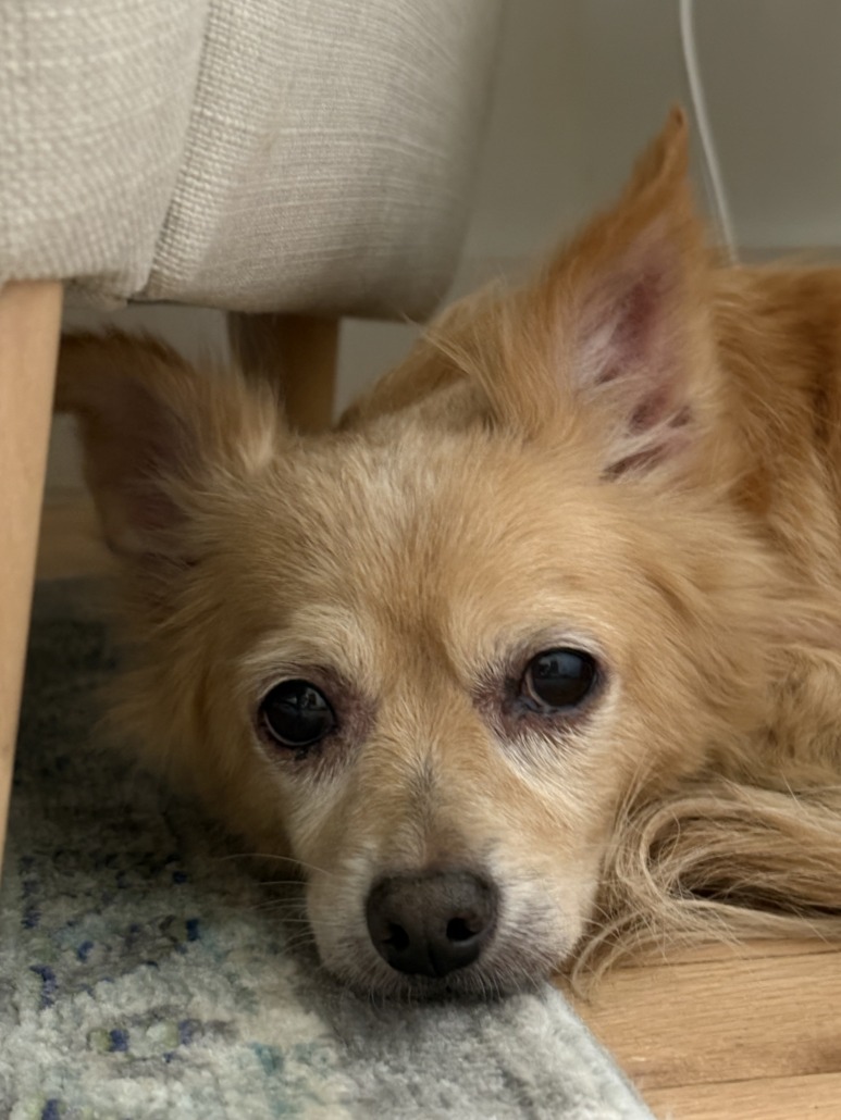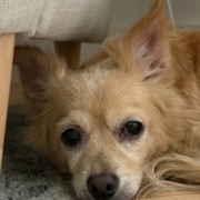 Small tan chihuahua looking dog with long hair. Proof of ownership is required.