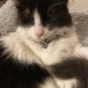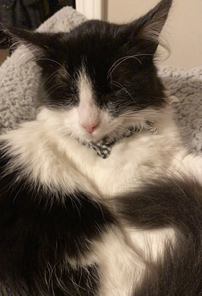 Black and white fluffy mail with swimmers foot (he waddles when he walks). Super lovable