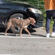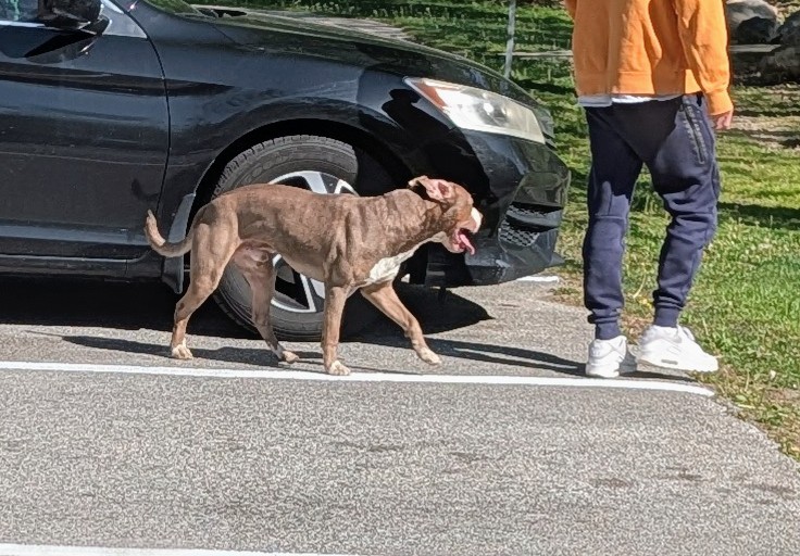 Male, no collar, pitbull breed