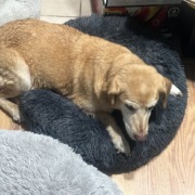 Older senior lab. Has moderate arthritis. Found wondering on W Sumner Ave on Southside of Indy between Bluff and Harding Street. Picked up to avoid her being hit by traffic. Desperately want to reunite her with her family. She is obviously someone’s loved pet.