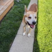 male husky mix – yellow and white broken lead
