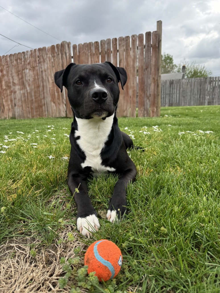 Maxx is all black except his chest & parts of his paws are white. He’s extremely sweet.