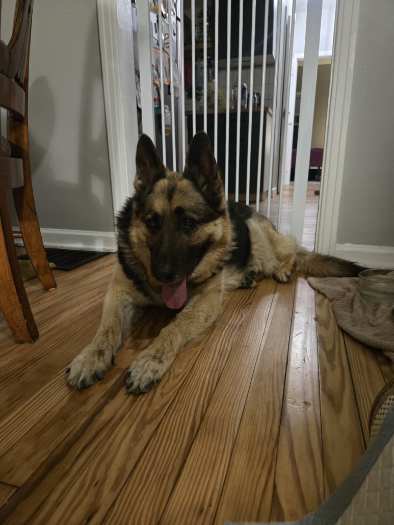 Elderly German Shepherd. Came when called several times.