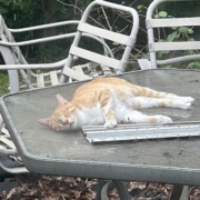 Orange and white left ear tipped male cat