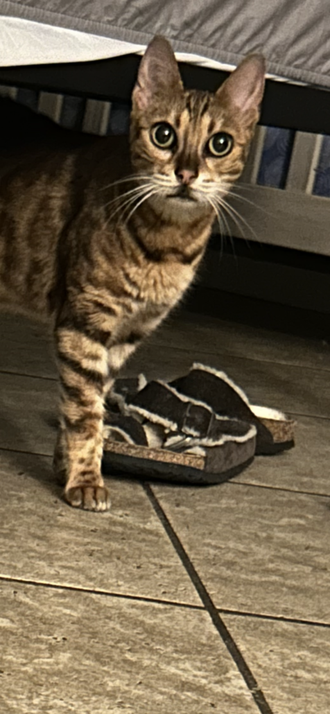 Tabby/ bengal mix coat has some orange and browns