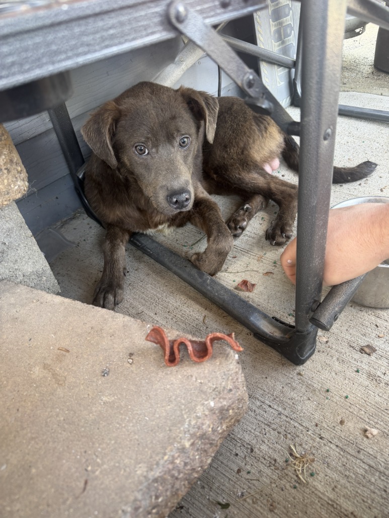 Male puppy found in yard in Oaklandon area. Brown with light tan. Right ankle has white.