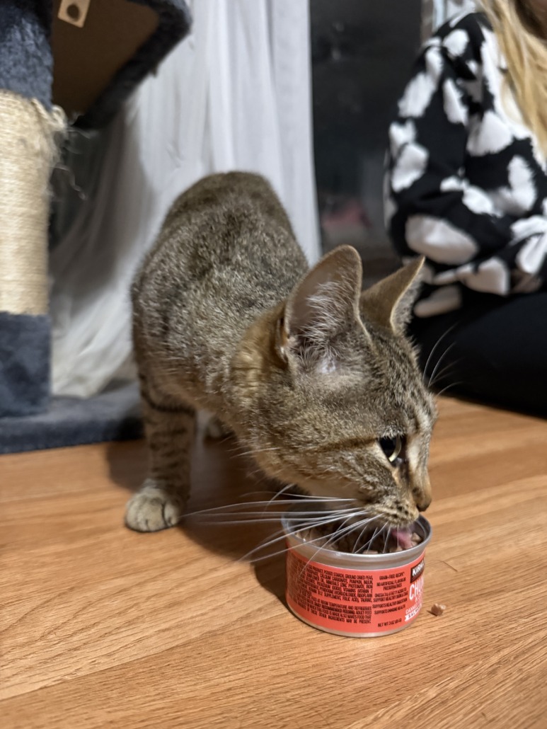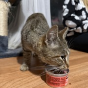 Seems to be a female Tabby cat under a year old. Is not chipped, but seems to be in good health. Proof of ownership required.
