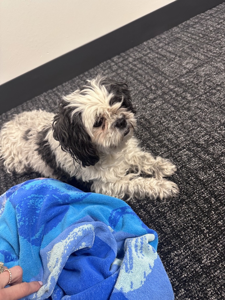 Black and white female shit zhu. Must provide additional photos of pup to claim.