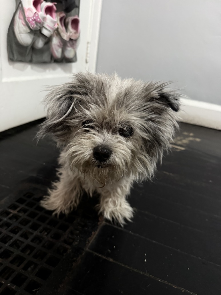 My wife found this little dog on the street where we live, between Weghorst and S. East St. He appears to be quite old; his toenails were extremely long, and his eyes were dirty—he possibly cannot see or hear. If this is your dog, please send me a message.