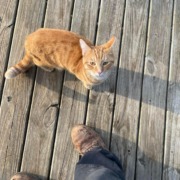 Friendly orange cat very sweet. Vet says he’s roughly a year old. He accepts being held, car ride and being in a crate.