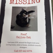 Lost Cat, Alert #96778 Poof missing near W 46th street, lafayette road, 56th street, eagle creek area46254