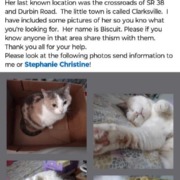 Lost Cat, Alert #75607 Biscuit missing near St Rd 38 & Durbin Rd, Clarksville area46060