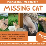 Lost Cat, Alert #74439 Leonette (Leo) missing near Blue Ridge and Boulevard Place, Butler Tarkington46208