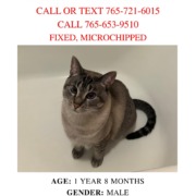 Lost Cat, Alert #73717 Socrates missing near Stop 11 and Madison, Indianapolis46227