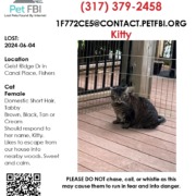 Lost Cat, Alert #73665 Kitty missing near 116th and olio rd, Fishers46040